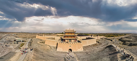 全景地址:嘉峪关 嘉峪关,号称“天下第一雄关”, 位于甘肃省嘉峪关市西5千米处最狭窄的山谷中部,城关两侧的城墙横穿沙漠戈壁,北连黑山悬壁长城,南接天下第一墩,是明长城最西端的关口,历史上曾被称为河西咽喉,因地势险要,建筑雄伟,有连陲锁钥之称。 嘉峪关是古代“丝绸之路”的交通要塞,中国长城三大奇观之一(东有山海关、中有镇北台、西有嘉峪关)。 嘉峪关始建于明洪武五年(1372年),由内城、外城、罗城、
