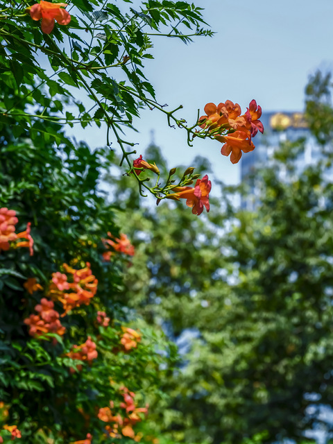 花事。杭州大兜路历史街区的一条小巷,仁和仓北弄上凌霄花开的热烈而奔放。凌霄花在城市每个角落都有,但要整条巷子两边围墙全开满,行人又少的地方着实不多,仁和仓北弄就是这么一个地方。爱花的女生可以去,这是个极好的拍照景地。本组图片拍摄于2022年8月22日(周一),现在估计花还在,但也是花期的尾期了,感兴趣的小伙伴可以前去观赏。具体地址定位:仁和仓北弄,靠近丽水路一则,对面是卖鱼桥小学的对外开放的公共地