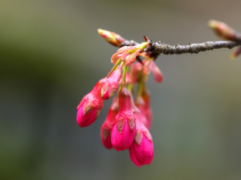 杭州植物园福建山樱花已盛开,在园内西大门入口处和蔷薇园两处地方,福建山樱花也叫钟花樱,是花期最早的樱花之一。植株优美漂亮,叶片油亮,花朵为鲜艳亮丽紫红色,外形向一个个倒挂的小钟,经常作为母本杂交培育新的樱花品种,在日本称为“樱花之母”。樱花是日本的国花,人们以为樱花都是出自日本,其实两千多年前的秦汉时期,樱花已在中国宫苑内栽培,唐朝时樱花已普遍出现在私家庭院。每年山樱花开时,树下都会聚集一大批拍鸟