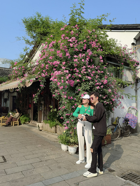 蔷薇花爬满“最美味-什么鬼”的咖啡屋屋顶 2022.04.24