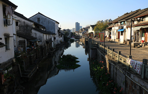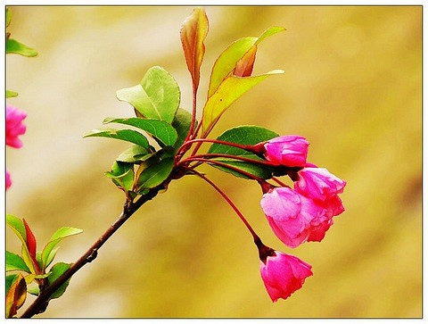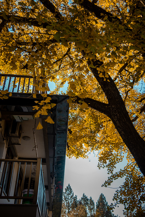 村远柴门黛履霜,菲红树林间疏黄,道上叶落胭脂色,粉墙瓦当立斜阳。