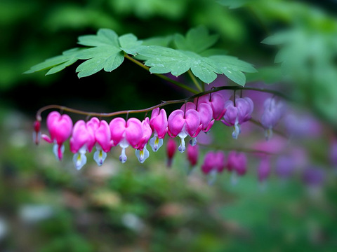 荷包牡丹,因叶子像牡丹花叶而得名。美丽、玲珑、小巧微风吹过,摇曳的像风铃。?