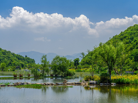 杭州·铜鉴湖公园里湖,空气清新,视野通透山色俊美触目可及