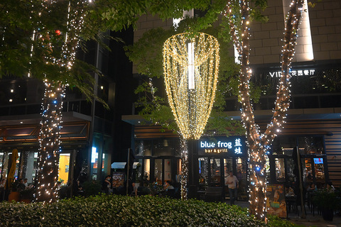 嘉里中心夜景拍的应该都是街景,特色是灯饰特多,当然还有好几处不大的水景,虽然不是喷泉,但与众多闪亮的星星点点相映,显得不喧哗而很搭调,是那种安静优雅的味道。当然,打麻将和打扑克是见不到的,来这里年轻人居多,就是聊天也是轻轻不出大声的,或许是像西方文明国家的街景吧,反正这里是自成一种味道的。