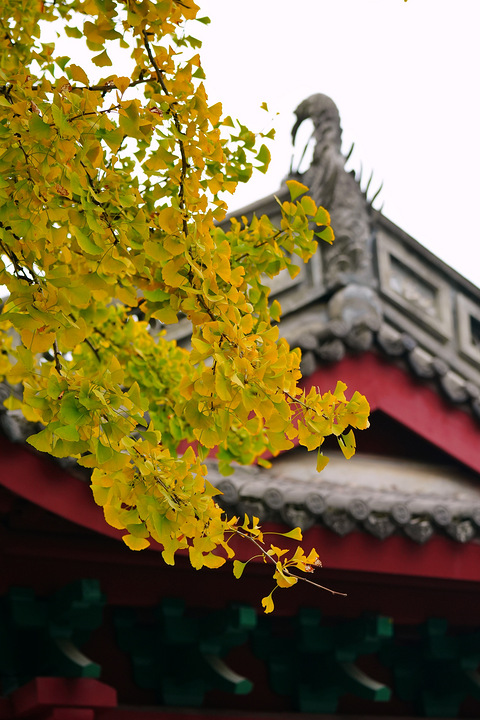 银杏秋来叶泛娇,黄裳披挂傲云霄。