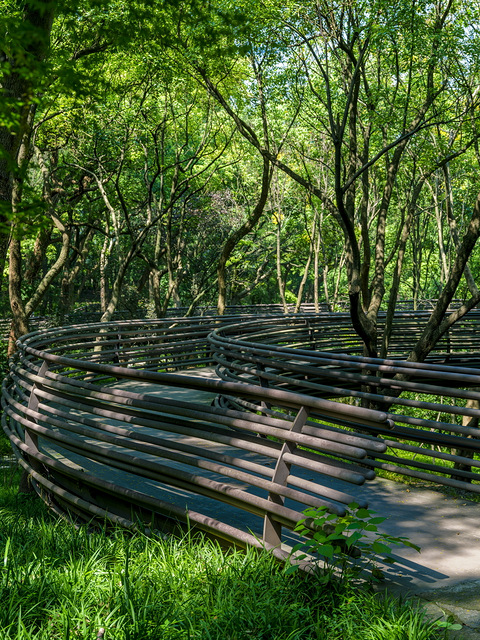 杭州,一个鲜为人知的“爱情诗路”主题公园。虽然已过七月初七,在八月十五中秋节介绍爱情故事的地方也算应景。公园入口就在浙江革命烈士纪念馆的石碑斜对面,距万松书院停车场500米不到的地方。2020年6月24日公园正式开园,地方不大借用了梁祝爱情传说,公园分了几个:爱情诗路、曲水流觞(梁祝读书)、白蛇飞渡、鹊桥相会、缘亭等版块。最引人注目的是蜿蜒盘旋在树林里的白蛇飞渡绝美空中曲桥,过多的爱情故事公园内有