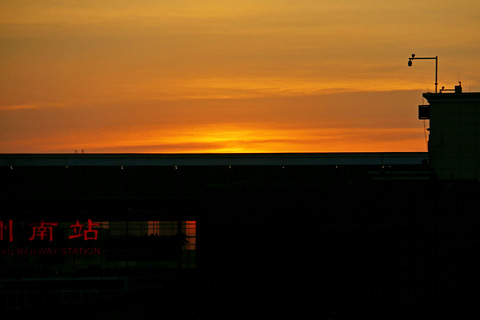 初秋时分,一轮红日从杭州南站顶上冉冉升起,气势磅礴,光芒四射,天下大明!