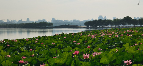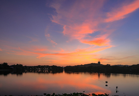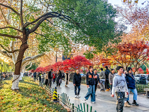 少年宫正对面的一排红枫绽放,点缀西湖美景!