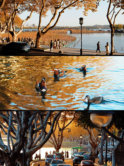 西湖北山街的梧桐大道正式迎来最佳观赏期,清晨和傍晚的光线下氛围感满满,街道完美诠释了灿烂如画。沿着北山街一路逛,运气好可以还碰到湖边的嬉戏的鸳鸯。