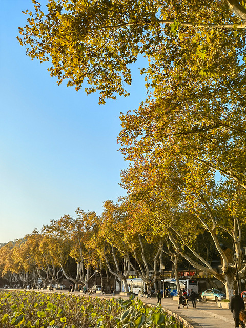 立冬刚过,北山街的梧桐树叶开始黄了,西北风再刮几场,叶子会由黄色变铁锈色,为美丽的西湖增添亮丽的色彩。