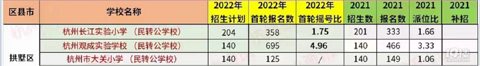 2022年拱墅3所民转公小学,转编教师对比,及招生人数对比