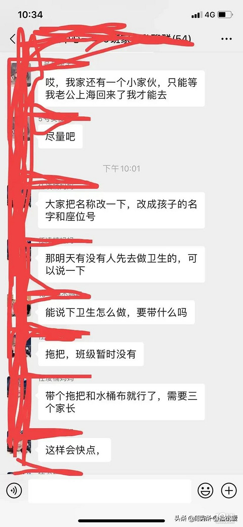 最近看到这样一则消息,事情是这样的:孩子上学班级卫生经学生家委会商量由家长按学生学号轮流打扫,此位家长直接说不同意,却引来网友的无数谴责。对此我表示很无奈。 我支持这位家长做法,是我我也不同意,不是懒不懒的事,就感觉心里跟吃了只苍蝇。 我儿子班里46个学生,每个学生都有自己的卫生区域,一人一到两块地面砖,每个学生都自带方便袋,垃圾、铅笔屑随手倒入,放学后统一倒在教室垃圾桶,每天轮流两名同学倒掉教室