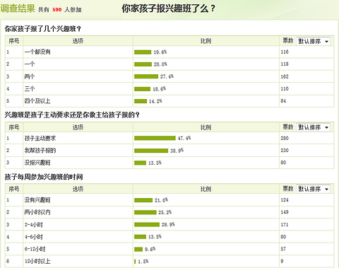 之前斑斑在版里有向网友征集、讨论兴趣班的话题:比如网友只为更完美 说:一年级的小朋友该不该给他报兴趣班,幼儿园的时候就报了一门画画,现在给他报了好多课程,怕他吃不消,该报多少合适了???还有网友番茄降临遣潮 说:老婆为了 不想回 农村 为了培养孩子 盲目报名补习班 7天 天天下午补习 晚饭吃好 补习 一个月下来算了算 每节课多是100-300左右的样子 我多快要崩溃了 小小平民 至于这样吗:我马上