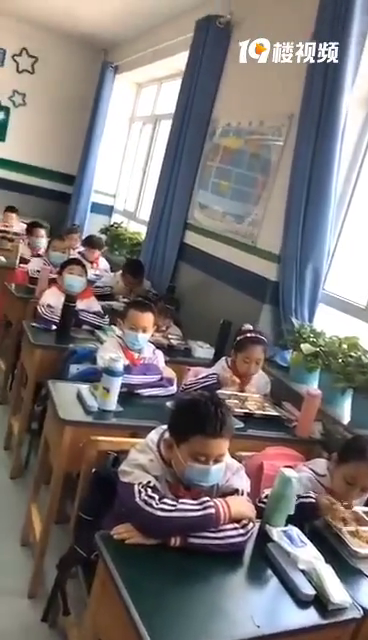 今天看到朋友发的视频,不知道是哪边的开学视频,小朋友们按照地上的线间隔着排队进校园,还挺有序的 搞笑的是孩子们中午吃饭的样子,这个学校可能是没有食堂,学生只能在教室里解决午餐。但是不能同时摘口罩吃饭啊,只能采取这样的“错峰”方式,一列吃,另外一列继续戴着口罩……看着…… 作为老母亲,为边上戴着口罩咽着口水的孩子表示饿了。关键是这样的“错时”用餐真的有意义么?还是这些人,还是这样的间隔……大家怎么