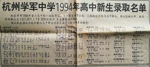 1. 为什么我要写这篇文章? 因为这是我将学生,妈妈,老师的角色三合为一,结合自己在这些角色中的心得体会浓缩出的实践真知。1994年 学军中学高一录取名单 这张散播着浓郁老旧气质的纸张,看得出已经有些年代了。如同发黄了的颜色一样,承载着我年少求学时的奋斗记忆。 现在的孩子,应该不会再有如此珍贵的仪式感,因为中考成功被学军中学录取后刊登广告,昭告天下他们是多优秀的人才。几乎我们年级的同学人手一份这