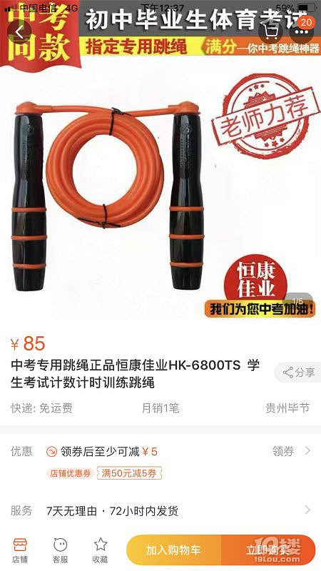 最近区里要进行体测,感觉每天督促孩子加强锻炼也很不错。但是我要吐槽下那个体测时候的绳子。平时孩子体育课跳的就是普通的塑料绳子(图一),190/分是完全ok的。但是体测绳子是那种有手柄的,当中是空心的那种塑料[img]file:///F:/WXwork/WXWork Files/Image/2018-10/756be80d-cfb6-4288-9579-65baeb18cfa7.jpg[/img