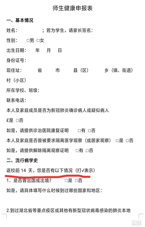 昨天学校开始统计未在杭州的学生, 今天又突然收到教育部的通知, 下午又收到老师的体温表,打印回家,女儿问我还有14天要上学了吗?仔细一看,吓了一跳!真的写了返校前14天,从4月1日算起!!! 这节奏是不是要开学了啊! 现在每天看国外数据,觉得要长期抗战准备,还是挺担心的 @各位家长:报到时需家长将此表填写完整、打印签名上交(与2月2日-3月31日体温检测表同时上交)。4月1日后,体温及健康状况请填