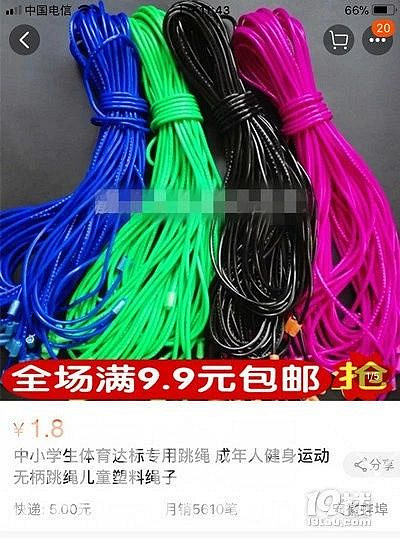 前天,有位网友在19楼教育论坛发帖,说小学生跳绳有了新要求: “最近区里要进行体测,感觉每天督促孩子加强锻炼也很不错。但是我要吐槽下那个体测用的绳子。平时孩子体育课跳的就是普通的塑料绳,一分钟跳190个是完全ok的。但是体测绳子是那种有手柄的,当中是空心的塑料绳,重量不一样,手柄习惯不一样,孩子没有一段时间练习,怎么能达标。如果规定跳绳要用带手柄的这种,一年级开始就应该一直用这种。各位爸爸妈妈们