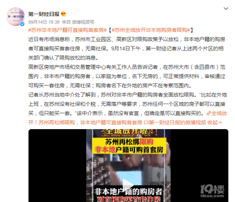 9月14日从苏州市住建局、苏州当地中介与部分售楼处工作人员处了解到,外地人在苏州六区(吴中区、吴江区、姑苏区、相城区、高新区、工业园区)购买首套房无需开具社保证明或个人所得税证明,但只限购一套,同时相城区取消了自2018年开始实施的需要600积分才能购房的规定。相关人士强调,此举只是对外地人购买首套房政策进行优化,取消相关约束条件,并非取消限购。 之前苏州外地人买房好像要交6个月社保,现在意思是外