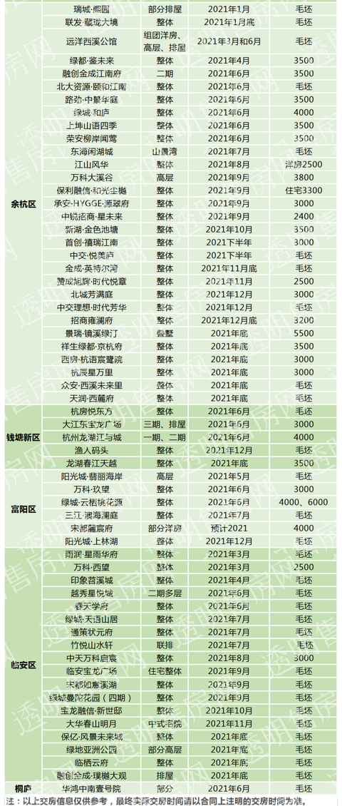 过去这一年,我们共同经历了非比寻常的一年。 由于疫情的原因,杭州楼市跌宕起伏,不少项目施工进度受到影响,一些工地有几个月的时间都处于停滞状态,许多购房者甚至做好了延期拿房的心理准备。 可即便如此,房地产行业依然表现出了强大的韧性,杭州市场尤甚,绝大多数楼盘依然能如期交付。 据质量第三方不完全统计,2021年杭州有近百个楼盘交付在即,西溪公馆、厘望NEO1、御品、中城汇、东城金茂府、沁园、奥邸国际、