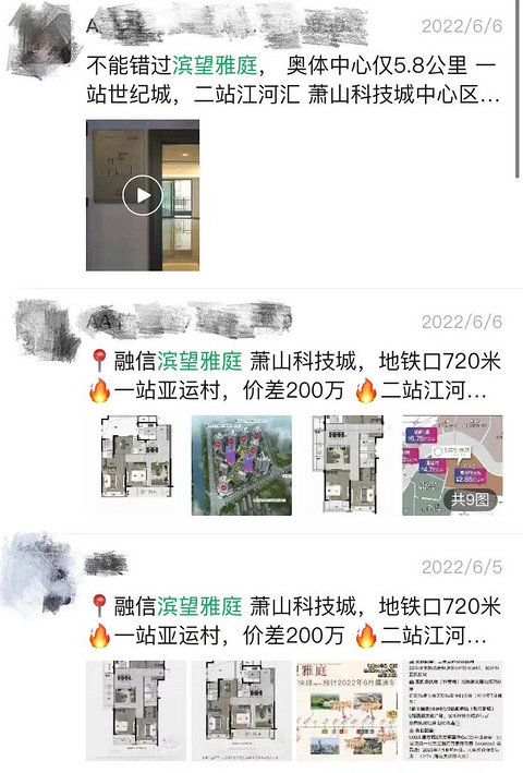 很多板块,要顶不住了。 这两天,我的朋友圈里忽然多了很多分销广告,许多中介都开始集中火力推销融信·滨望雅庭。 随手一搜就是数条: 有点诧异。 因为在我的印象里,滨望雅庭所在的萧山科技城,前阵子的势头还是不错的。加上楼盘离地铁的距离还好,日子应该不会那么惨。 不过,翻开滨望雅庭从首开至今的登记情况,还是被震惊到了: 在今年1月30日首开时,滨望雅庭还登记了692组,中签率约为46%。而到了5月中旬加
