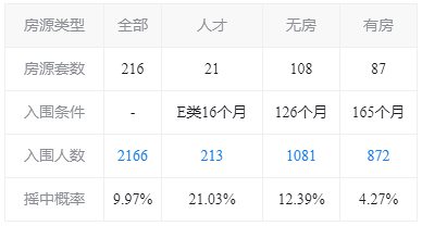 红盘限售8年,还值得买吗? 23日凌晨,古墩彩虹轩的社保入围结果终于出炉了,虽然没有社保满格,但无房户126个月、有房户165个月,除了人才之外,社保入围月份均在10年之上,也印证了当初一言楼市高社保局的预估。 不仅如此,216套房源,2166人入围,总体中签率为9.97%,成为8.5新政之后,第4个整体中签率低于10%的限售楼盘,也是杭州限售年限最长的楼盘之一。 古墩彩虹轩摇号中签率 8年多的时