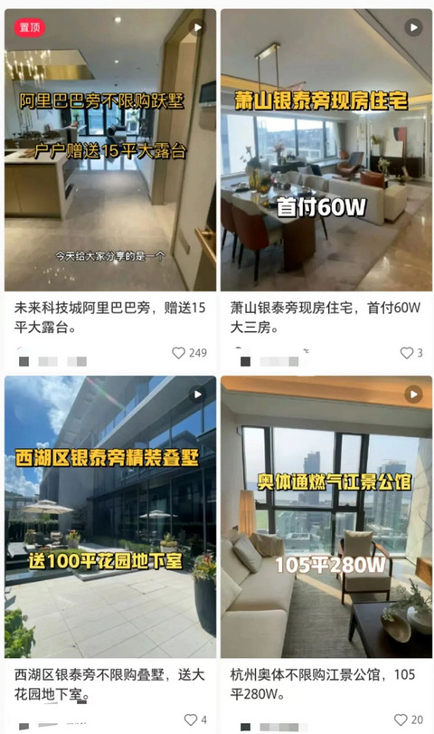 买一套杭州豪宅需要多少钱? 面对这一问题,你可能当即脱口而出,像九溪玫瑰园、武林壹号、江南里、杭州壹号院等各板块豪宅代表作,动辄八、九位数的“金贵身价”。不过,某红书平台上却有这样一类房子,标榜杭州“豪宅”,却以百万总价挥泪甩卖。 (截图自:某红书) “杭州改善型客户首选,绝美排屋,175平只需260W。” “杭州别墅天花板!急售140W!送100方花园。” “首付70万,130方绿城精装叠墅赠送