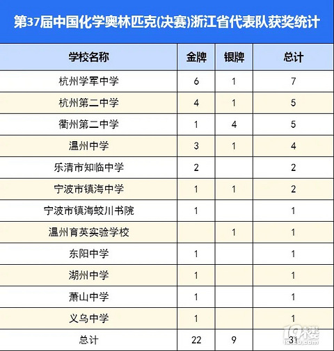 化竞浙江31人入围参赛,夺得22金9银的优异成绩