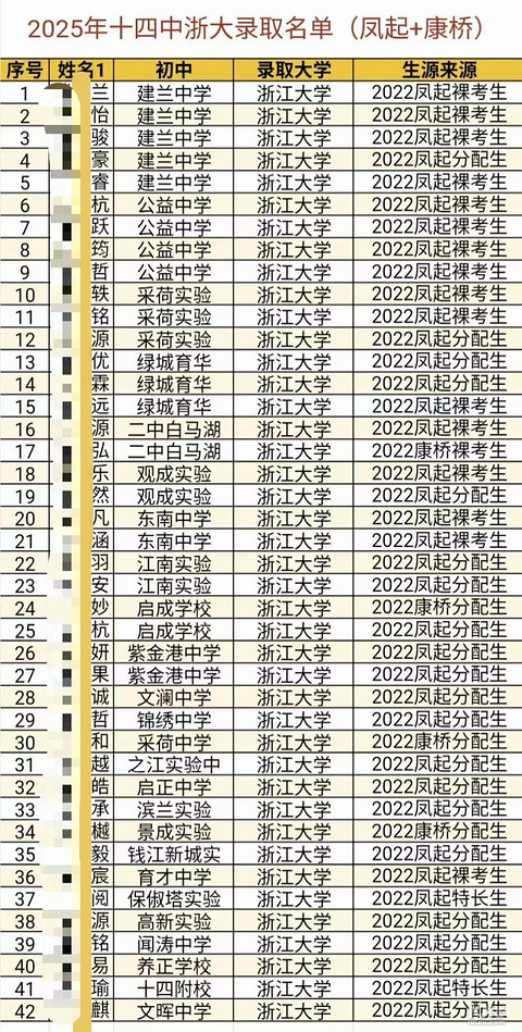 不仅实名公布,还附初中学校。总共720人,实际高考693人。985水平录取50余人,211水平录取130余人,占比达20%。每5人中有1人可上211。另外,2025杭高钱江省属重点高校预计录取近500人。其中省属第一批浙工大40+人,杭电23人,国美11人,宁波大学19,浙师大12人……
