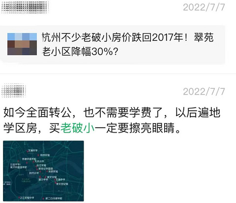“狂跌30%!”“跌回2017!”“房东又主动降价了~” 最近杭州老破小再度爆冷的消息又刷圈了。 而根据我最近的实调和分析,杭州老破小不只是“跌回2017”这么简单: 1、对比疯涨的挂牌来量,老破小的成交量只是杯水车薪; 2、别看成交量比新政前多,那只是大幅牺牲价格的“以价换量”; 3、进入到热skr的7月淡季,从没有流量的郊区,到烟火气聚集的市中心,再到曾风靡一时的主城名校旁,还有线上拍卖市场,