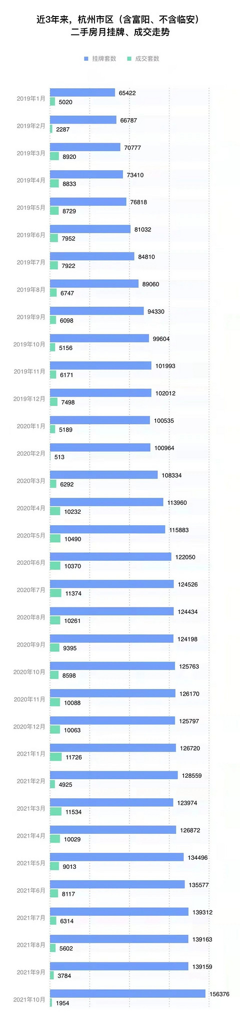 截至目前,透明售房网上显示杭州市区(不含临安)二手房挂牌量达到15.6万套,创下了历史新高。相比9月的13.9万套,新增了1.7万套。其中二手住宅挂牌量,从9月的10.4万套,增至11.9万套。 一个月新增1.5万套住宅二手房,是何原因?哪些小区出现了大规模的新挂牌房源呢?钱江晚报小时新闻记者进行了分析。 二手房挂牌量1个月激增1.7万套 其中住宅新增1.5万套 透明售房网的数据显示,2019年1