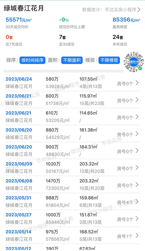 01 毫无悬念,杭州二手房成交量又缩水了。 相比5月的6998套,6月杭州市区总共才卖了4914套,环比跌去3成。 成交虽少,可排名前列的小区,还是熟悉的名字。 不过,也有些许新变化。比如,交付长达17年的绿城春江花月,6月以7套网签,排名第37位。 实际成交还不止。中介说单这两个月,已知的就卖了16套。 明明前两年,春江花月还是楼市里的小透明。每个月也就1-2套网签,最多的一个月也不过4套。 在