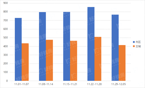 二手房市场弱势回温只是昙花一现,11月和12月交叠的一周,成交量又跌回去了。好找房数据显示,(2021.11.29-2021.12.05)市区二手房共签约768套,环比下降10%,其中住宅签约量595套,主城区二手房签约416套。 近五周成交走势 主城区周签约榜单榜单 注:1、该排行榜数据不含自助签约平台数据,榜单中二手房小区签约套数相同以签约面积排序。 市区周签约榜单 注:1、该排行榜数据不含自