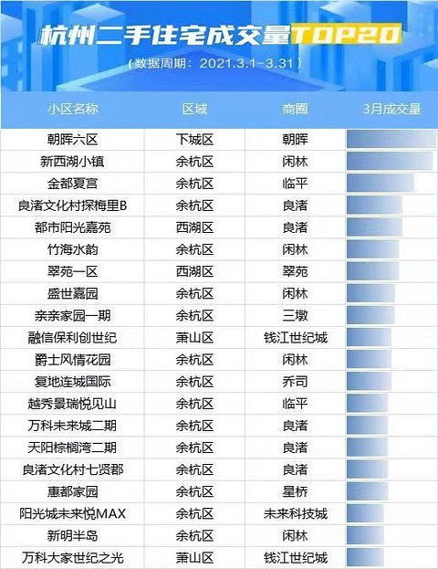 近日杭州贝壳发布了3月份二手房市场的一系列数据,包括二手楼盘的3月成交量排行,以及3月份二手楼盘的带看数量排行等。 由于二手房没有限售,限价、摇号等行政政策的影响,更能直接的反应出楼市的实际状态。 且杭州贝壳市占率较高,数据支撑力较强,能够比较完整的展现杭州二手市场的真实情况,故此次我们根据杭州贝壳的3月份数据做一个简单的市场解读。 看看杭州楼市的真实市场热点在哪,这些数据又隐藏着些什么秘密。 先