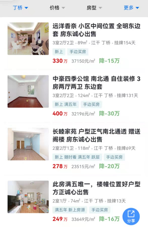 前不久,长睦将引入大型商综合体业的消息不胫而走。 根据官方回复,大概率会是银泰。这对于人口密集,却独缺大型商业配套的长睦来说,实在是激动人心。 按照通常的剧本,板块房东又将趁热打铁,上演一场大戏,结果二手房市场却如湖水一般平静。 隔壁的丁桥亦如是,开业一月有余,二手房出乎意料的安静。 可见,杭州画的大饼太多,很少人会再为突如其来的规划和利好不惜一切地买单了。随着二手房市场持续暗淡,越来越多房东从预