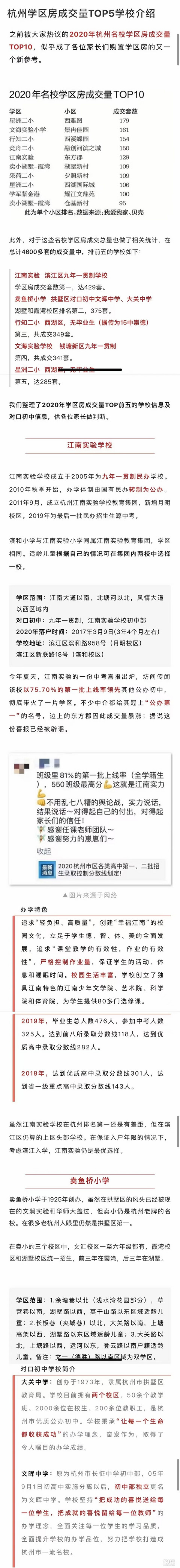 转发:杭州成交量top5的学区房对口小学和初中介绍