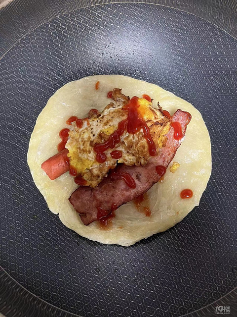 第一次做, 前面两个都是焦的,[ej=1F644][ej=1F604]手抓饼一张, 加点油, 来个小鸡蛋, 弄根培根 ,就是这番茄酱为啥大家是连续的, 而我的就是一点一点有点不忍直视这人很赏脸 全吃完了 ,夜宵吃的有点多,不管了吃了再说[ej=1F92D][ej=1F92D]