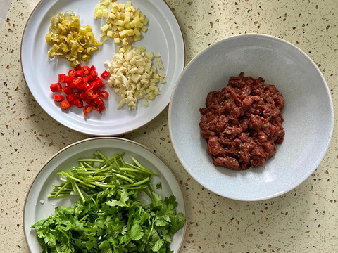小炒牛肉好吃谁不知道,我们内心咆哮的是,“怎么样才能让肉不老!!” 瘦牛肉容易柴,一旦炒废就会觉得难于上青天;而一旦掌握技巧就会觉得,这色香味俱全的下饭菜竟然如此简单快手,从此纳入家庭保留菜单。让牛肉片嫩滑不柴的小技巧,记得看食谱后的小贴士~ 小炒黄牛肉 用料牛里脊肉 200克香菜/芹菜 3根蒜 适量姜 适量小米辣 适量泡椒