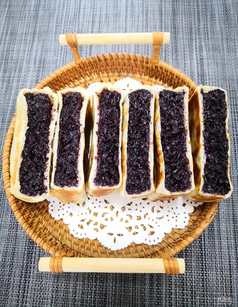 前两年淄博烧烤火遍全国的时候,也带红了另一个淄博特色美食——紫米饼。紫米有“米中珍品”之称,比普通白米多了满满的花青素,秋天多吃紫米可以给身体添加活力。而且,紫米消化慢,饱腹感强,可以延缓餐后血糖上升速度,还能促进肠道蠕动,对容易积食的人也非常友好。 提前做好的紫米饼,早上加热几分钟就能吃,咬开的紫米馅软糯拉丝,带着淡淡的米香,不齁不腻。搭配一杯豆浆或牛奶,早八人也能饱饱扛到午餐~ 用料中筋面粉2