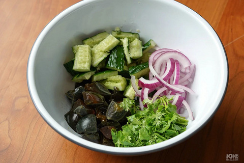 今天拌个皮蛋黄瓜1、3个皮蛋去壳切大块,1根黄瓜洗净后切小段,半个紫洋葱切细条,1小把香菜切小段。放入盆中。 2、取一小碗,加入1勺辣椒面,1勺蒜末,1勺葱花,1勺白芝麻,1勺小米辣圈,备用。 3、取一小锅,倒入2勺食用油,开中火油热后,倒入调料碗中,再加入1勺生抽,1勺香醋,1勺蚝油,1/3勺盐,1/4勺白砂糖。搅拌均匀。*更香的做法可以加一步:热油时,转小火再加入1勺红皮花生,炸至花生皮变深红