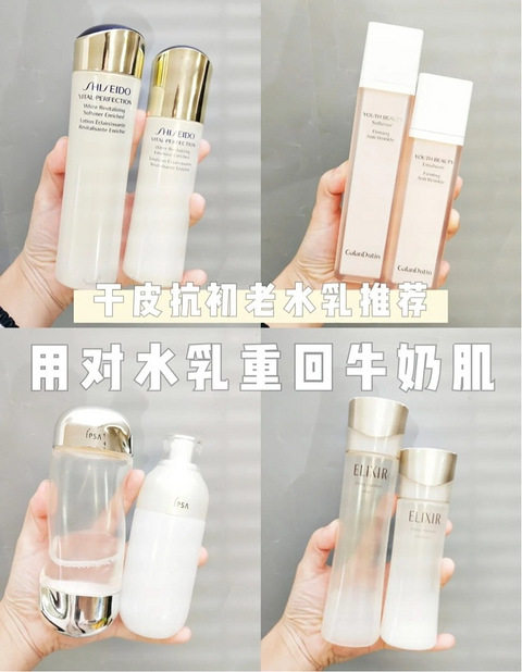如果你平时护完肤的当下脸是亮白的,但没过多久皮肤就暗黄了,这其实是抗氧化能力不够,不妨换一套有抗初老功效的水乳~