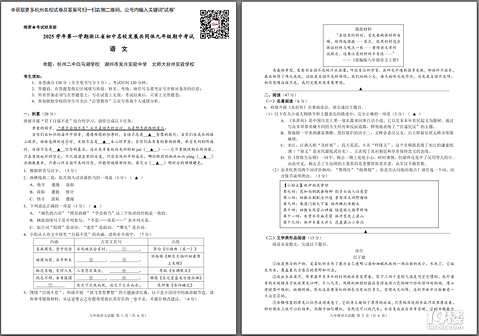 【语文】2025年浙江省初中名校发展共同体期中测试九年级语文试卷