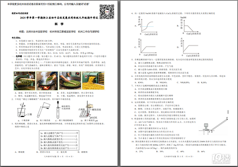 19楼教育版块为您提供2025年浙江省初中名校发展共同体期中测试九年级科学试卷,获取试卷完整电子版pdf免费下载及参考答案分析请下拉至文末。 学校:浙江省初中名校发展共同体学年:2025 年级:九年级学科:科学性质:期中文件大小:1.52MB PDF密码请添加下图助手号领取