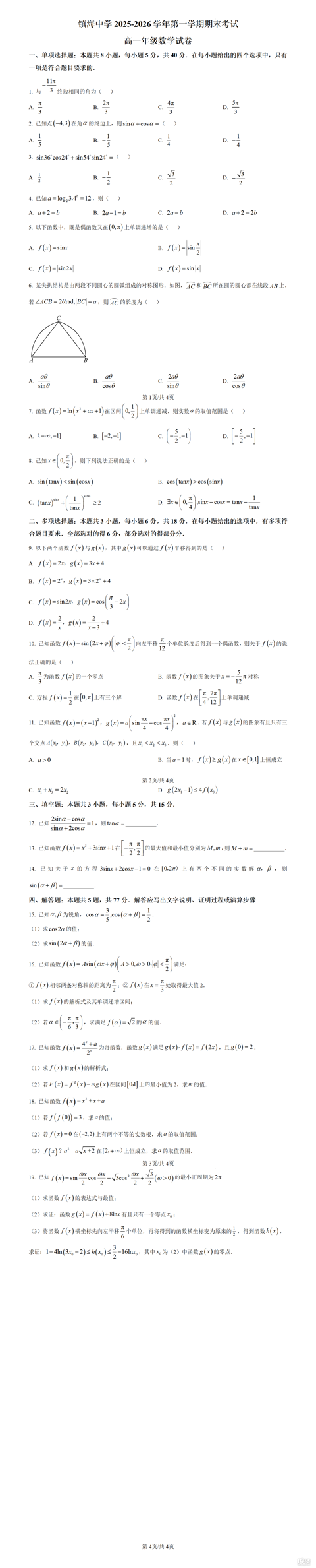 镇海中学2025-2026学年高一上学期期末考试数学试题
