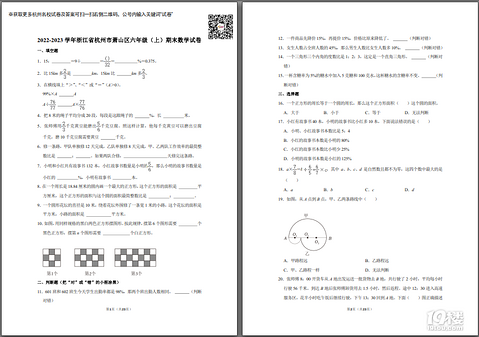 19楼教育版块为您提供2022-2023学年浙江省杭州市萧山区六上期末数学试卷,获取试卷完整电子版pdf免费下载及参考答案分析请下拉至文末。 学校:萧山区学年:2023 年级:六年级学科:数学性质:期末文件大小:861kb PDF密码请添加下图助手号领取