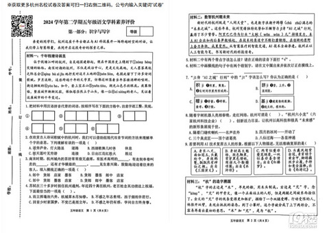 19楼教育版块为您提供2025年杭州市萧山区五下语文期末试卷,获取试卷完整电子版pdf免费下载及参考答案分析请下拉至文末。 学校:萧山区学年:2025 年级:五年级学科:语文性质:期末文件大小:3.85MB PDF密码请添加下图助手号领取