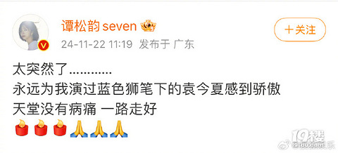 谭松韵发文悼念《锦衣之下》作者蓝色狮:“永远为我演过蓝色狮笔下的袁今夏感到骄傲”想袁今夏了。 《扶摇皇后》的作者天下归元发文称《锦衣之下》的作者去世了。 来源:搜狐娱乐