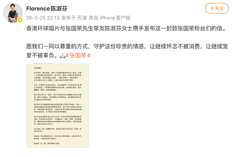 昨晚(3月25日),香港环球唱片与张国荣先生挚友、前经纪人陈淑芬携手发布了一封致张国荣粉丝们的信。 信中称,近日,在售票平台出现多场以“纪念张国荣”为名的演唱会及演出活动信息。不仅使用张国荣先生的肖像,视频进行宣传,更大量播放“哥哥”生前经典曲目。对此,香港环球唱片与张国荣前经纪人陈淑芬公开声明,截至目前并未对外做过任何类似授权。 信中还郑重向演出主办方正告:未经许可使用张国荣先生的肖像、姓名进行