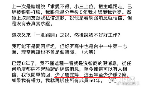 F.I.R飞儿乐团的前成员阿沁日前宣布与公司合约到期,离开F.I.R飞儿乐团,回归独立制作人身份。有网友在社媒上评论称他早前把詹文婷“一脚踢开”,他长篇大论回复该网友,称自己是与詹文婷分手5年后才认识现在的老婆,老婆不是小三。詹文婷是自己与公司有合约纠纷,他无法参与,还说少了詹文婷,这五年至少少赚2亿,他如果有权力,就把所有成员绑住50年,因为谁都不会跟钱过不去。在几个亿面前,什么都可以谈…… 来