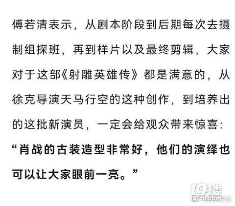 傅若清称肖战等演员的演绎让人眼前一亮